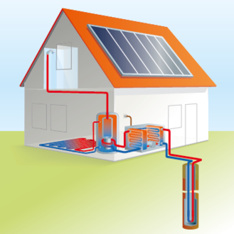 Wärmepumpen im Gebäude erhöhen anschließend die Temperatur noch weiter, um sie für die Heizungen und das Warmwasser nutzbar zu machen. Für jede Kilowattstunde Strom, die die Wärmepumpe benötigt, werden bis zu sechs Kilowattstunden Wärme erzeugt. Mit Hilfe der Erdwärmesonde kann zudem im Sommer gekühlt werden, da die Temperatur in 100 Metern Tiefe ca. 12 Grad Celsius beträgt.