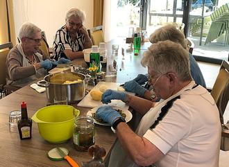 Lang-Göns (ikr). In der AWO-Tagespflegeeinrichtung in Lang-Göns „Am Lindenbaum“ wurde kürzlich nicht nur gekocht, sondern auch gelacht, geschnippelt und miteinander diskutiert. Auf dem Speiseplan stand ein echtes Lieblingsgericht vieler Generationen: Kartoffelsalat mit Bratwürstchen.
