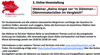 Für Hausbesitzende und alle anderen interessierten Bürgerinnen und Bürger der Quartiere im Landkreis Gießen, darunter auch Langgöns, bieten die Kommunen ein kostenfreies Webinar über Fördermittel zur Gebäudemodernisierung an.