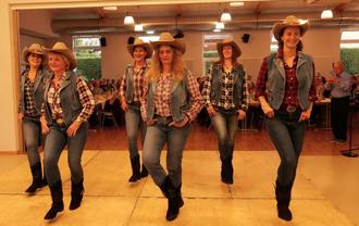 Nach dieser nicht alltäglichen Darbietung ging es erst einmal geruhsam weiter: die „Sangesfreunde Kleebachtal“ unter der Leitung von Ottmar Rücker präsentierten altbekannte Weisen, darunter „Bergheimat“ und „Ich bete an die Macht der Liebe“. Humorvoll wurde es beim Auftritt der „Drei Oberkleener“ alias Verena Zörb, Alexander Metz und Stefan Brück. Sie strapazierten die Lachmuskeln ihrer Zuhörerschaft mit einem vorgezogenen Weihnachtsspaß-Spektakel, bei dem das Dorf- und Familiengeschehen auf platt sehr vergnüglich thematisiert wurde. Für viel Bewegung sorgte Isabel Haub und ihre Linedance Showtanzgruppe „Isi Boots“. Wie schon im vergangenen Jahr brachten die Cowgirls fetzige Western-Atmosphäre in den Saal und animierten das Publikum zum Mittanzen an ihren Plätzen. Bei Songs wie „Oh Susanna“ und „Let’s twist again“ kannten viele Senioren kein Halten mehr und zeigten mit Begeisterung, dass das Alter kein Hindernis für sportliche Bewegungen darstellen muss. Alle Mitwirkenden im Rahmenprogramm ernteten großen Applaus. Eine Fotoschau der Aktivitäten des Seniorenbeirats, die Heinz Gischler aus Cleeberg zusammengestellt hatte, lief während des gesamten Nachmittags. Die positive Resonanz der Besucher zeigte, wie wichtig ihnen solche Veranstaltungen sind, um sich zu treffen und gemeinsam etwas Schönes zu erleben. Nach dem Abendessen nutzten viele Besucher die Möglichkeit, mit dem Bus nach Hause gebracht zu werden.