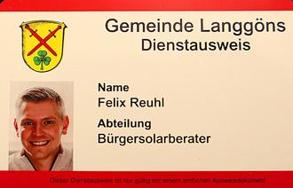 So wie der Ausweis von Felix Reuhl sehen auch die Ausweise der anderen BürgerSolarBerater aus