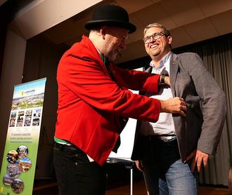 Bei ihm war nicht viel zu holen: Uwe Mettlach mit Bürgermeister Marius Reusch