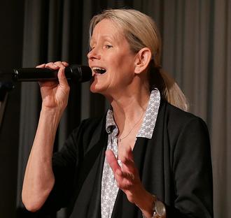 Musikalisch-nostalgisch ging es weiter mit Martin Hanika. „Vor einiger Zeit waren die Häuser bei uns im Kleebachtal noch gar nicht verschlossen, so schlecht war die Zeit damals vielleicht doch nicht“, leitete Martin Hanika zu seinem Programmpunkt über: als waschechter Bub aus dem Kleebachtal holte er mit Akkordeon und kräftiger Stimme die vertrauten Melodien von früher zurück: „Wenn das Wasser im Rhein goldener Wein wär“, „Im schönsten Wiesengrunde“ oder „Lustige Oberhesse“ – viele sangen leise mit, andere wippten im Takt, manche stimmten sogar lautstark ein.