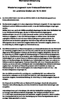 Wahlbekanntmachungfür dieWiederholungswahl zum Kreisausländerbeiratim Landkreis Gießen am 18.12.2022