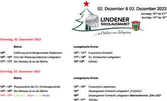 Bereits zum 26. Mal findet am 02.12. und 03.12.2023 der Lindener Nikolausmarkt im alten Ortskern von Leihgestern statt. Die liebevoll adventlich gestalteten und dekorierten Verkaufsstände laden zum Bummeln und Verweilen im alten Ortskern von Leihgestern ein.