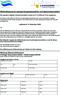 Zählerablesung für analoge Hauptwasserzähler und Gartenwasserzähler