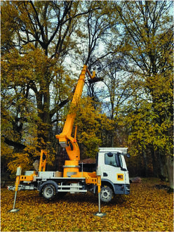 Hubsteiger in passenden Herbstfarben am Zimmerplatz