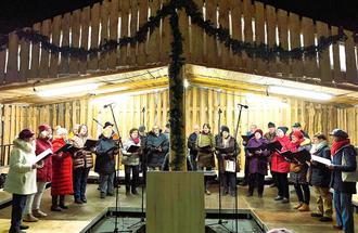 Langgöns (ikr). Von Schnee bestäubt und bei kalten winterlichen Temperaturen präsentierte sich am Wochenende der 34. Langgönser Weihnachtsmarkt. Er war nach der zweijährigen Coronapause ein absoluter Publikumsmagnet für Groß und Klein, es war proppenvoll, Menschenmassen drängten sich ab dem späten Samstagnachmittag durch die Moorgasse und über den Mühlberg. „Das war wieder ein ganz toller Weihnachtsmarkt mit großartiger Stimmung und einmaligem Flair“, zeigte sich eine Passantin begeistert und sprach damit sicherlich für die meisten im Publikum. Auch am Sonntag kamen zahlreiche Besucher, um die vorweihnachtliche Atmosphäre und die ansprechende Mischung aus einer bunten Warenpalette, einer großen Speisen- und Getränkeauswahl sowie einem vorweihnachtlichen Rahmenprogramm mit einer Vielzahl von Musik, Tanz und Gesangsdarbietungen zu genießen und sich in geselliger Runde mit Freunden und Bekannten zu treffen. Im abwechslungsreichen Rahmenprogramm trat u. a. der Gesangverein “Germania” Langgöns unter Leitung der Chorleiterin Adriana Pop auf. Es wurde neue Chorliteratur dargeboten. Insgesamt drei eingängige Melodien erklangen, die beim Publikum sehr gut ankamen. Einen Weihnachtsmedley im Line Dance Style hatten die „Isi Boots“ eigens für den Weihnachtsmarkt Langgöns einstudiert. Außerdem sammelten sie an ihrem Charity-Stand Spenden für den Umwelt- und Klimaschutz der Gemeinde.