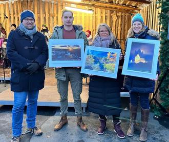 Langgöns (ikr). Die drei schönsten Einsendungen des Fotowettbewerbs für Hobbyfotografen, zu dem die Gemeinde Langgöns im November aufgerufen hatte, wurden im Rahmen des Langgönser Weihnachtsmarkt prämiert. Landschafts- oder Gebäudeaufnahmen sollten eingesendet werden. Die Marketing-Beauftragte Isabel Haub verkündete gemeinsam mit Bürgermeister Marius Reusch die drei ersten Plätze und überreichte den stolzen Gewinnern Präsente. Den ersten Platz belegte Gaby Beinlich mit einem Foto des Steinbruchs in Oberkleen, gefolgt von Moritz Lange, der das Cleeberger Schloss aus der Vogelperspektive beim Sonnenuntergang fotografiert hatte. Kathrin Meywald kam mit ihrer Aufnahme der St. Michaeliskirche in Oberkleen bei Nacht auf Platz drei.