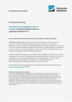 20.01.2025, Langgöns. Bald wird Langgöns durch Deutsche Glasfaser mit schnellem Internet versorgt. Das Team von Deutsche Glasfaser möchte sowohl Kunden als auch interessierte Bürgerinnen und Bürger einladen, um über die Möglichkeiten und Vorteile von Glasfaser am Dienstag, den 04. Februar 2025 im Bürgerhaus Langgöns (Am Alten Stück 3, 35428 Langgöns), um 19:00 Uhr zu informieren. Neben den Vorzügen von Glasfaser erfahren sie alles rund um den Hausanschluss, die Installation der Endgeräte sowie mögliche Serviceleistungen.