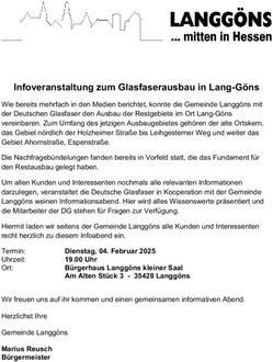 Hiermit laden wir seitens der Gemeinde Langgöns alle Kunden und Interessenten recht herzlich zu diesem Infoabend ein.