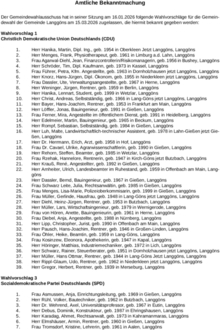 Bekanntmachung Wahlvorschläge Gemeindewahl