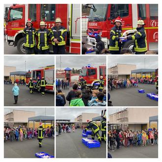 Pünktlich zur ersten Großen Pause trafen die drei mit Blaulicht und Martinhorn auf dem Schulhof ein.