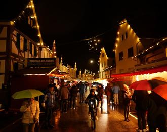 Regenschirme dominierten am Samstagabend das Bild des Langgönser Weihnachtsmarktes