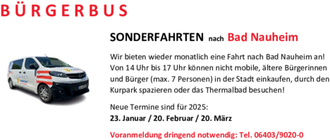 Bürgerbus-Sonderfahrt Bad Nauheim Januar - März 2025