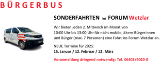 Bürgerbus-Sonderfahrt Forum Wetzlar Januar - März 2025