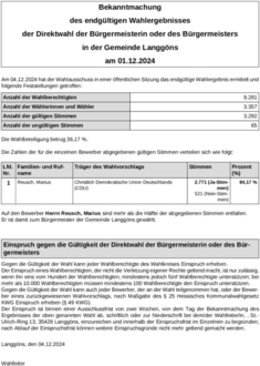 Bekanntmachung Ergebnis - Direktwahl der Buergermeisterin oder des Buergermeisters - Gemeinde Langgoens