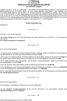 | „(1) | Sind auf einem Grundstück mehrere Messeinrichtungen vorhanden, erhebt die Gemeinde für jedes Erfassen der Zählerstände für die zweite oder weitere Messeinrichtung 5,00 EUR. |