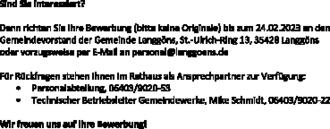 Stellenausschreibung techn. Sachbearbeiter