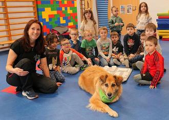 Frida war 2019 der erste Kita-Hund in der Gemeinde Langgöns. Seitdem besucht Julia Fuchs, die seit rund 28 Jahren in Diensten der Gemeinde Langgöns steht und aktuell in der Kita Kinderhaus arbeitet, immer wieder die sieben gemeindlichen Kindertagesstätten und bietet dort ihre tiergestützte Pädagogik an. Die Kita Mäuseburg in Lang-Göns nimmt zum ersten Mal teil. Vier Wochen lang kommt die sympathische Begleithundeführerin mit der achtjährigen Frida, die zum Therapiebegleithund ausgebildet ist, immer montags und dienstags in die Einrichtung, wo beide schon sehnsüchtig erwartet werden.