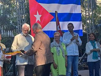 Langgöns (ikr). Havanna, Kuba, 28 °C, sommerliche Hitze. Musik erfüllt die Luft, Stimmen aus vielen Sprachen mischen sich. Vertreter von Solidaritätsorganisationen aus 35 Nationen sind an diesem Tag zusammengekommen. Als Kubas Präsident Miguel Díaz-Canel nach vorn bittet, ist die Spannung spürbar. Dann fällt der Name Dr. Edgar Göll. Der gebürtige Oberkleener tritt vor, sichtbar überrascht – kurz darauf erhält er vom Präsidenten die Jubiläumsmedaille „ICAP65“, eine Anerkennung für sein langjähriges internationales Engagement und die vielen Aktivitäten der Gruppen in Deutschland.