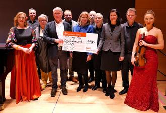 Gießen (ikr). Eine Spende in Höhe von 1.500 Euro überreichte Ilona Roth, Vize-Vorstandsvorsitzende der Sparkasse Gießen, an Professor Dr. Ulf Sibelius, den 1. Vorsitzenden des Gießener Fördervereins PalliativPro. Am Rande des von der Langgönserin Barbara Fandré organisierten 15. Benefizkonzertes von und für den Verein händigte sie den symbolischen Spendenscheck im Beisein von weiteren Vorstandsmitgliedern des Fördervereins und den Künstlern, die an diesem Abend auftraten, aus. „Es ist mir eine Herzensangelegenheit, Sie zu unterstützen, auch persönlich“, betonte sie. Denn die Arbeit des Vereins, der sich ausschließlich aus Mitgliedsbeiträgen und Spenden finanziert, sei „wichtig und bedeutsam“. PalliativPro hat sich das Ziel gesetzt, den Patienten eine möglichst hohe Lebenszufriedenheit, Lebensqualität und Selbstständigkeit zu erhalten, auch wenn keine Heilung mehr möglich ist. Der Verein agiert in Stadt und Landkreis Gießen sowie in der Wetterau.