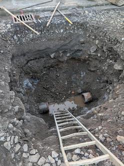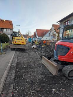Nachdem zum Ende des vergangenen Jahres die Arbeiten am ersten Bauabschnitt abgeschlossen werden konnten, wurden noch vor Jahresende die Arbeiten im zweiten Abschnitt aufgenommen. In diesem Bereich werden Hausanschlüsse der Kanal- und Wasserleitung erneut sowie die Hauptleitung der Wasserversorgung erneuert. Im Bereich des Kanals erfolgt dies jedoch nur partiell. Die vorausgegangene Kanalbefahrung hat ergeben, dass keine vollständige Erneuerung notwendig ist, sondern nur an einzelnen Stellen.