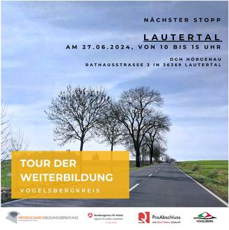 Um alle Interessenten im Vogelsbergkreis zu erreichen und zu diesem Thema beraten zu können, kommen wir in die Gemeinden und beraten Sie vor Ort zu Möglichkeiten der beruflichen Weiterbildung und deren Finanzierung.