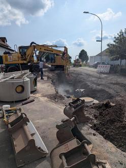 Sobald dieser Abschnitt abgeschlossen ist, werden die gleichen Arbeiten im zweiten Bauabschnitt fortgesetzt. Parallel dazu beginnt im bereits fertiggestellten Bereich der Straßenbau. Auf diese Weise kann in beiden Abschnitten gleichzeitig gearbeitet werden, was eine effiziente Umsetzung des Gesamtprojekts sicherstellt.