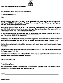 Bitte ausschneiden und bis zum 20.08.2022 bei Reiner Greb (0 66 43/ 73 45) oder Wilfried Köhler (0 66 43/ 8507) abgeben. Gerne aber auch telefonisch.
