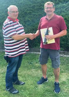 Reiner Seibert (links) dankte Lothar Böck für seine verantwortungsvolle Arbeit seit Gründung der Nachbarschaftshilfe im Vorstand mit einer Urkunde und einem Präsent. ⇔Foto: Winterholler