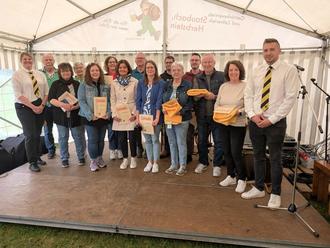 Das Sport-und Festwochenende der Spielvereinigung Hopfmannsfeld/Eichenrod bietet alljährlich die Möglichkeit, sich bei langjährigen Mitgliedern für Ihre Vereinstreue zu bedanken. Im Festzelt wurden acht Ehrungen für 25-jährige Mitgliedschaft, vier Ehrungen für 40 Jahre sowie neun Ehrungen für 50 Jahre ausgesprochen. Das Vorstandsmitglied Carina Kaut (von links) konnte sich dabei persönlich bei folgenden Mitgliedern bedanken: Robert Staubach (für 50 Jahre), Heike Grabner (40), Marianne Schäfer (50), Elke Rodemer (40), Linda Zink (40), Astrid Staubach (40), Martin Kimm (25), Eva Winter (25), Uwe Schneider (25), Elfriede Weidl (50), Daniel Kirchner (25), Rudolf Löbel (50) sowie Waltraud Löbel (50). Weiterhin war auch Vorstandsmitglied Daniel Peppler bei der Ehrungszeremonie eingebunden und bedankte sich bei den anwesenden Ausgezeichneten für die langjährige Vereinstreue, was durch Überreichung von Urkunde und Präsent unterstrichen wurde. Ihre Ehrung bekommen nachgereicht: Lukas Volp (25), Kevin Rodemer (25), Harald Katzer (25), Birgit Riedel (25), Thomas Möser (50), Stefan Möser (50), Annemarie Grabner (50), Walter Jöckel (50).