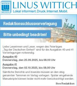 Redaktionsschlussvorverlegung Tag der deutschen Einheit 2025