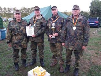 Sechs Mannschaften aus dem Landeskommando Hessen begaben sich auf einen rund 13 Kilometer langen Orientierungsmarsch, auf dem an Stationen verschiedene Aufgaben gelöst werden mussten. Start und Ziel waren der Platz am Vereinsheim der Reservistenkameradschaft Feldatal. Gefordert waren neben der Orientierung auch das richtige Verhalten bei Feindberührung und ABC-Alarm, Erste Hilfe, Schießen, Übersetzen eines Gewässers mit dem Schlauchboot sowie das Zusammenbauen von Maschinengewehr, Pistole und Gewehr aus den Einzelteilen, die sich gemischt in einer Kiste befanden. Sieger wurde die Mannschaft der RK Feldatal, auf Platz zwei kam die RK Lautertal mit Oberstabsfeldwebel der Reserve (d. R.) Achim Höll (rechts), Stabsunteroffizier d. R. Patrick Stein (Zweiter von rechts) und dem Obergefreiten d. R. Dennis Winterholler (Zweiter von links) Stabsunteroffizier d. R. Thomas Ruppel (links) war an der Station Selbst- und Kameradenhilfe eingesetzt. Die nächsten Plätze belegten die Mannschaften Fernwald, Wulf, Lich und Mittelhessen.