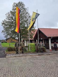 Die Reservistenkameradschaft (RK) Lautertal zeigte auch diesmal wieder Flagge. Seit der Wiedervereinigung gedenken die ehemaligen Bundeswehrsoldaten im Ortsteil Engelrod am 3. Oktober dieses für Deutschland bedeutsamen Ereignisses. Mal größer, beim zeitgleichen „Tag der Reservisten“, mal mit Gästen von den Alpini aus Arco und der Associazione Arma Aeronautica Alto Garda (italienische Luftwaffen-Reservisten) und mal kleiner, wie in heuer mit Gästen befreundeter Kameradschaften aus Lauterbach/Wartenberg und Lanzenhain. Von der örtlichen Politik begrüßte RK-Vorsitzender Oberstabsfeldwebel der Reserve (d. R.) Ortsvorsteherin Sabine Kreis und Bürgermeister Lukas Becker. Der Gesangverein konnte aus personellen Gründen diesmal nicht auftreten.