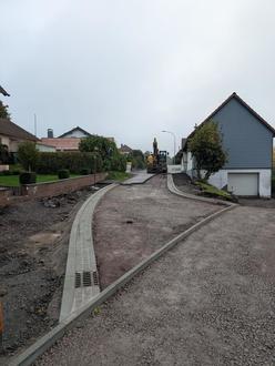 Sobald auf einer Teilstrecke das Telefon- sowie Stromkabel umgelegt worden ist, kann auch auf diesem Abschnitt der Gehweg ausgebaut werden.