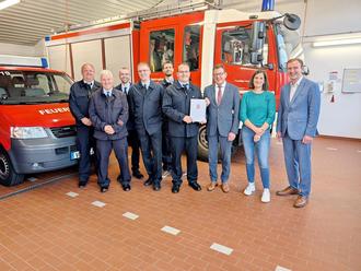 Den Stellenwert, den die Übergabe des Bewilligungsbescheides für die Freiwillige Feuerwehr aber auch für die Ortsgemeinschaft bedeutet, wurde durch die Anwesenheit mehrerer Feuerwehrangehöriger sowie der stellvertretenden Ortsvorsteherin Jessica Köhler unterstrichen.