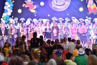 Volle TV-Narrhalla bei der Kinder- und Jugendsitzung des Karnevalverein Harmonien Großen-Linden am Veilchendienstag. „Von Kindern (und Jugendlichen) für Kinder(und Jugendliche)“ lautete einmal mehr das Motto. 155 Minuten lang boten 99 Kinder in der mit 366 kleinen und großen Besuchern restlos gefüllten Narrhalla ein elf Programmpunkte umfassendes Kinder- und Jugendspektakel. Sitzungspräsident Stefan Jung geleitete mit Stefan Müller (Musik) durch den närrischen Nachmittag. Garde- und Showtänze waren angesagt. Die Mini-Garde eröffnete mit einem klassischen Gardetanz das unter dem Kampagnemotto „Seid bereit - wir reisen durch die Zeit“ stehende Programm. Mit den „Graffitis“ unter Friedericke Wagner und Sarah Briegel startete die änzerische Reise in der „Steinzeit“