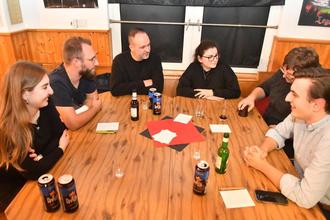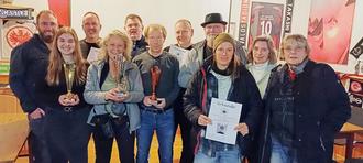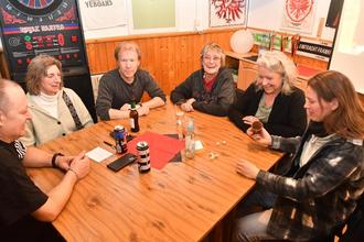 Sieben Stunden lang rollten am vergangenen Samstag beim 18. Würfelpokerturnier des Eintracht Frankfurt Fan-Club Ebbelwoi Adler Großen-Linden die Würfel, bis endlich Vorsitzender und Ehrenvorsitzender Matthias Schäfer in den ersten Sonntagsstunden zur Siegerehrung schreiten konnte. An drei Tischen wurde im „Block 42“ Würfelpoker, auch bekannt als Kniffel oder Yahtzee, gespielt. Am Ende siegte die Mannschaft „Die heiligen Bauernjäger“ mit Daniel Heil, Sebastian Gebauer und Bonita Jäger vor „Die Zuckerschnuten“ mit Christiane Fuchs, Simone Rollshausen und Ellen Rau. Den dritten Platz erwürfelten sich „Die Gazellen“ mit Oliver Burk, Dr. Uwe Hoepfel und Tanja Palumbo.
