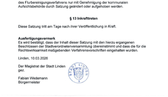Aufgrund der §§ 5 und 51 der Hessischen Gemeindeordnung i.d.F. der Bekanntmachung vom 07.03.2005 (GVBI I S. 142), zuletzt geändert durch Artikel 1 des Gesetzes vom 01. April 2025 (GVBI. 2025 Nr. 24), hat die Stadtverordnetenversammlung der Stadt Linden durch Beschluss vom 10.02.2026 folgende Satzung erlassen: