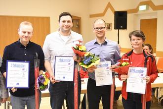 Silberne Verdienstnadel der TSG für (v.l.) Andreas Bellinger, Tobias Bauschke, Nikolas Leun und Patricia Hübner