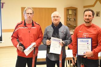 Verdienstnadel in Gold für (v.l.) Jörg Hübner, Klaus-Georg Leun und Marcus Velten ©Fotos: Thomas Wißner