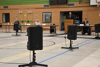 „Größer als der Bundestag“, unkte ein Besucher am Dienstagabend über den einmal mehr großzügigen Aufbau zur Sitzordnung der15. öffentliche Sitzung der Stadtverordnetenversammlung in der Stadthalle. Einmal mehr stand wie noch zu Zeiten der Coronaeinschränkungen ein Tisch für jeden Sitzungsteilnehmer bereit. Doch blieben acht der 51 aufgestellten Tische leer.