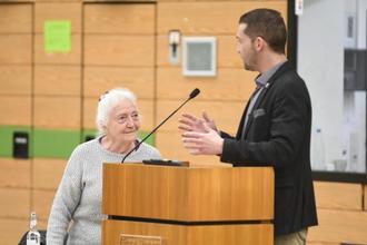 und Reinhild Schmidt aus Großen-Linden für ihr Engagement in der Flüchtlingsarbeit. Beide teilen sich den mit 1.000 Euro dotierten Ehrenamtspreis. Stadtverordnetenvorsteher Fabian Wedemann überreichte gemeinsam mit Erstem Stadtrat Harald Liebermann beiden Preisträgern jeweils einen Scheck über 500 Euro und Blumen