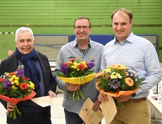 Gleich drei langjährigen Stadtverordneten wurde die Ehrenbezeichnung „Ehrenstadtverordneter“ für ihre mindestens 20jährige Parlamentszugehörigkeit verliehen. Die Auszeichnung konnten Burkhard Nöh (Mitte) und Hendrik Lodde (rechts/beide CDU), die beide seit 2001 dem Parlament angehören wie auch Matthias Spangenberg (links/SPD) verliehen, der von 1993 bis 2007, von 2011 bis 2016 und wieder seit 2021 in Empfang nehmen ©Fotos: Thomas Wißner