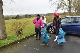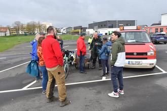 Klimaschutzmanager David Stadermann (rechts) begrüßte an der Volkshalle die Müllsammler