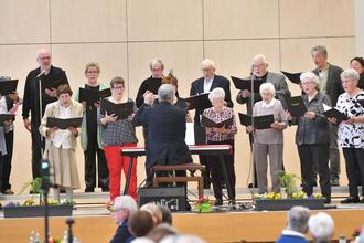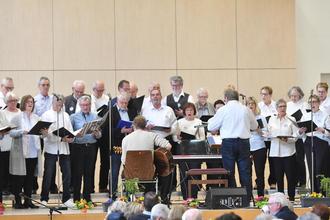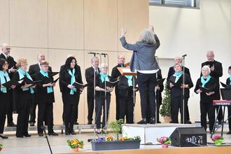 Unter der Leitung von Andreas Ziegler sang der Evangelische Kirchenchor Leihgestern die Lieder „Bist du da, bin ich geborgen“, „May the Lord send angels“, „You raise me up“ und „Heimat Leihgestern“