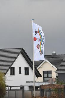 Am Fahnenmast weht nun die Kita-Fahne ©Fotos: Thomas Wißner