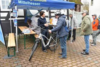 30 Fahrräder wurden am Stand ddes Polizeipräsidium Mittelhessen mit Schutzfrau Lisa Romfeld codiert