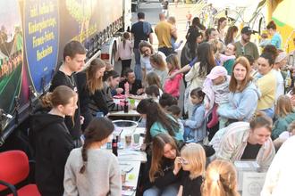 vor dem Zirkuszelt bot der Förderverein der Burgschule Kinderschminken an